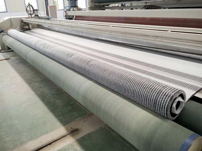 膨潤防水毯是一種用于人工湖泊水景、垃圾填埋場、地下車庫、樓花園、水池、油庫化學品堆場等防滲漏的土工合成材料,它是由高膨脹性的鈉基膨潤土填充在特制的復(fù)合土工布和無紡布之間,用針刺法制成的膨潤土防滲墊可形成許多小的纖維空間,是膨潤土顆粒不能像一個方向流動,遇水時在墊內(nèi)形成均勻高密度的膠狀防水層,有效的防止水的滲漏。膨潤土防水毯按生產(chǎn)工藝可分為:針刺法鈉基膨潤土防水毯、針刺覆膜法鈉基膨潤土防水毯以膠粘法鈉基膨潤土防水毯。 針刺覆膜法鈉基膨潤土防水毯,是在針刺鈉基膨潤土防水毯的非織造土工布的外表面上復(fù)合一層高密度聚乙烯土工膜。